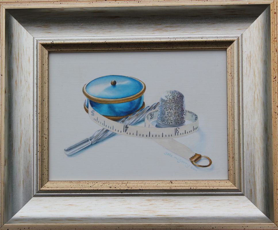 Thimble Tape and Needlecase, Oil on Wood, 5x7 inches ***SOLD***